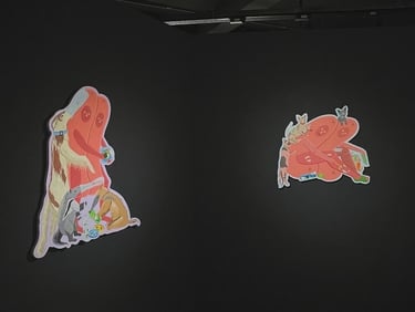畫面色彩的高度對比,一個個生命躍然於紙,勾勒出神秘的樂園。 這些動物不同於尋常的可愛形象,齜牙咧嘴地活動於畫布的各個角落。 但是它們的行為卻無從預料,面對觀者的束手無策,它們似乎開始了放肆的嘲笑。 猶大角色的對換,觀者才是一個個循規蹈矩站在場景內供它們觀賞的對象。